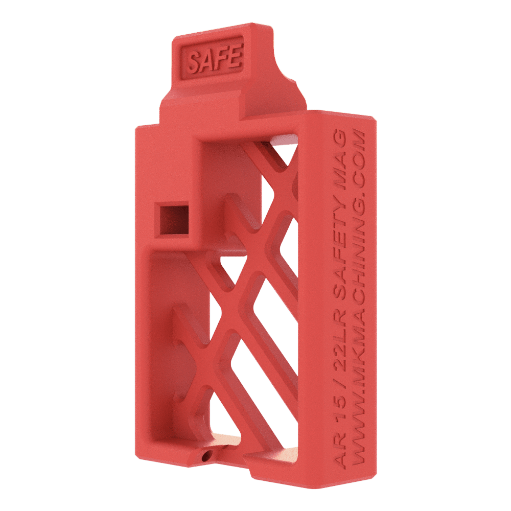 Confirm your rifle has no magazine installed, and cannot fire by locking the bolt back on your rifle with our AR – 22 “Safety Magazine”. Bright orange material serves as a quick visual indicator, and hollow construction shows no rounds could be inside. Locks in like a standard AR-22 magazine, protrusion prevents bolt from closing. Will only fit into the rifle if the bolt is open.