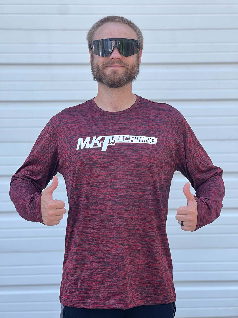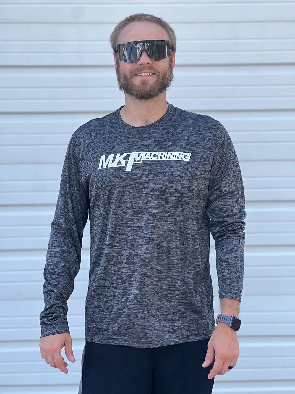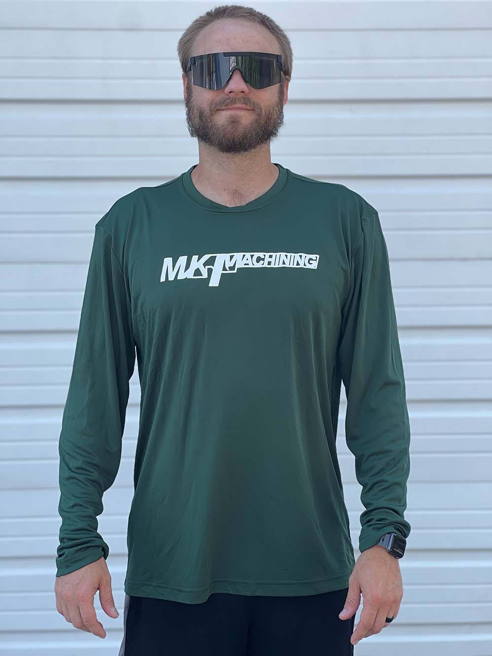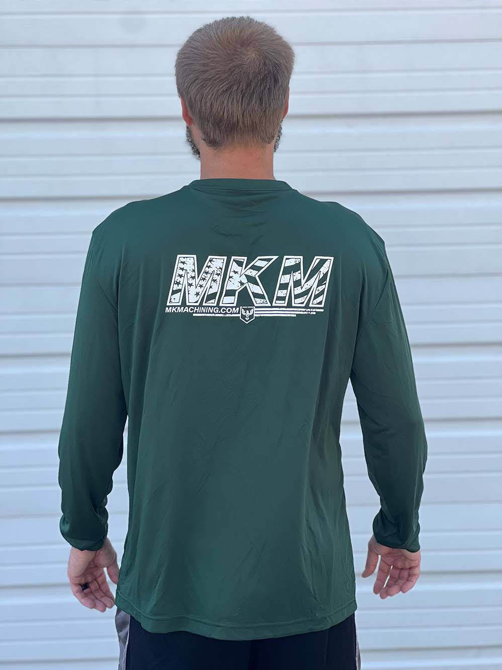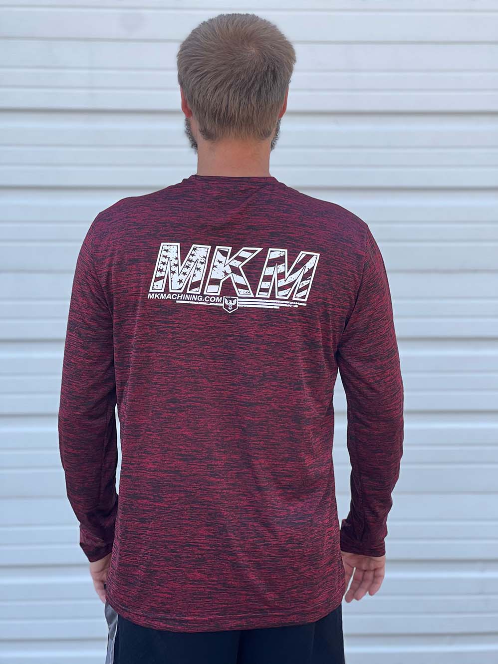 MK Machining long sleeved t-shirt features classic MKM logo on the front and flag style MKM logo on the back. Printed in Missouri on Sport-Tek Long Sleeve PosiCharge Competitor Tee. Please note out of stock items will take 4-6 weeks to ship.
