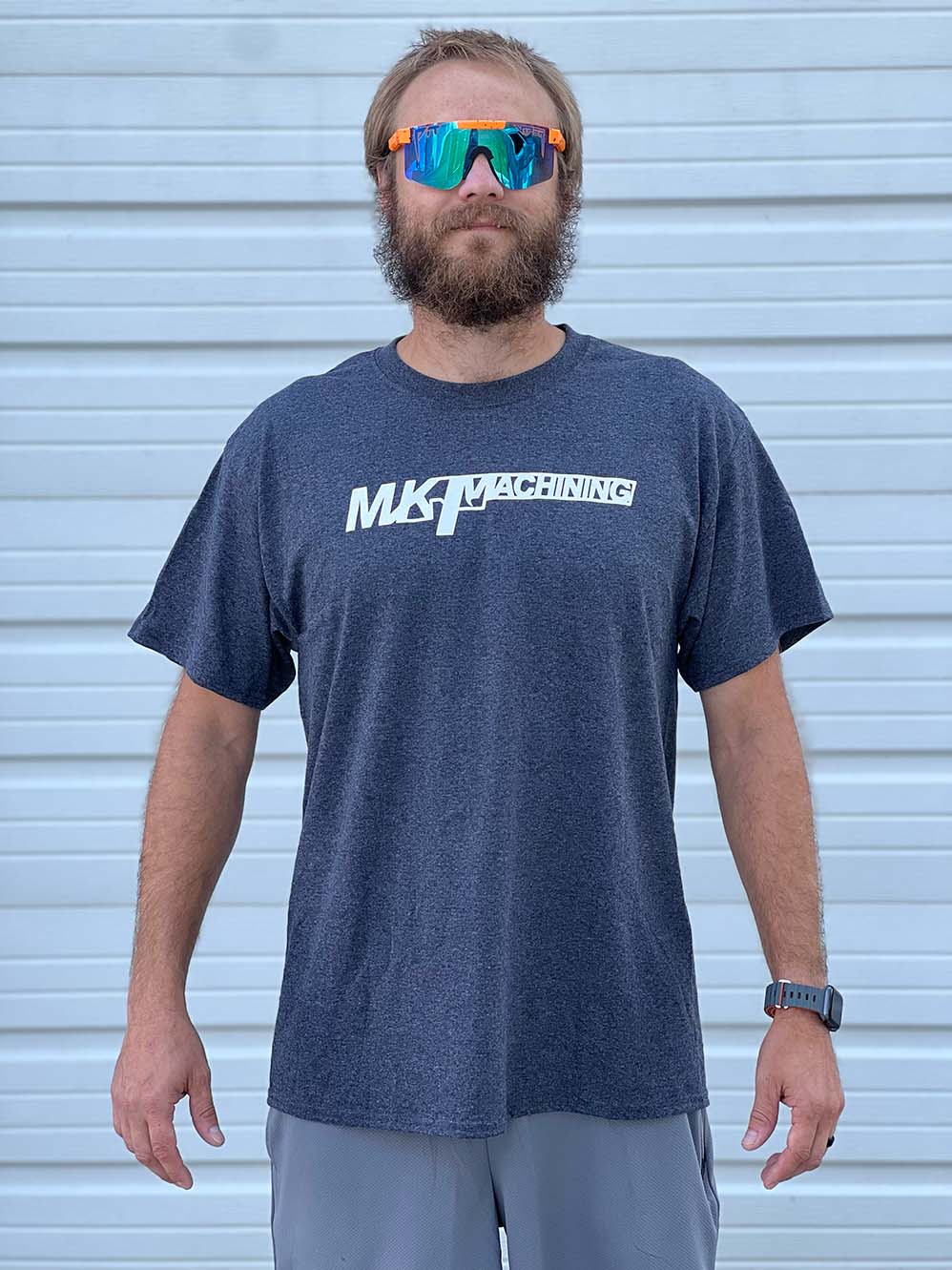 MK Machining t-shirt features classic MKM logo on the front and flag style MKM logo on the back. Printed in Missouri on Sport-Tek Long Sleeve PosiCharge Competitor Tee. Please note out of stock items will take 4-6 weeks to ship.