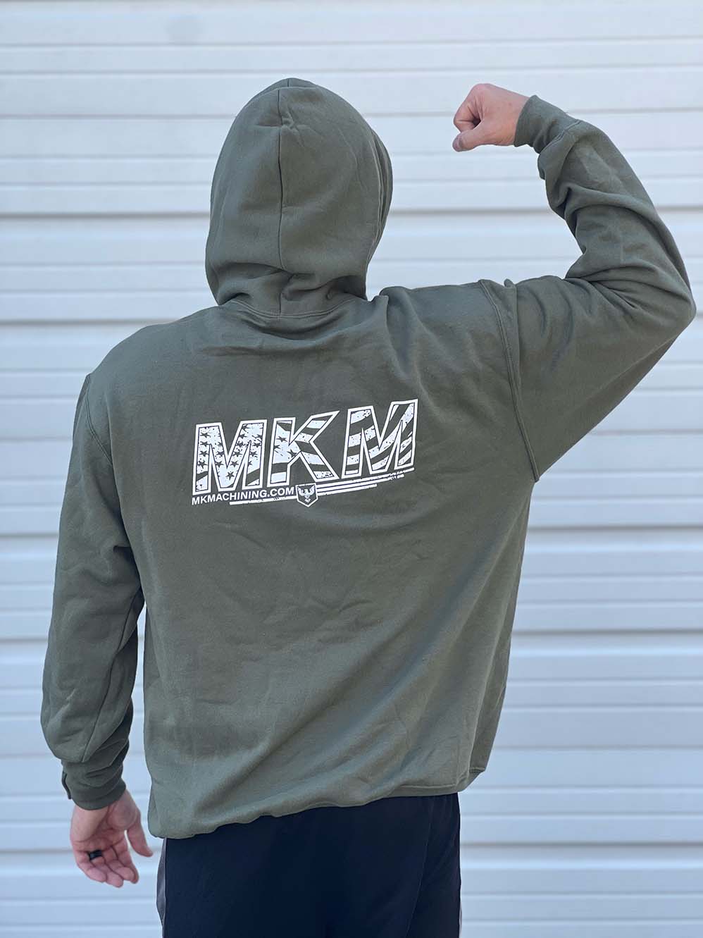 MK Machining sweatshirt features classic MKM logo on the front and flag style MKM logo on the back. Printed in Missouri on Port & Company Core Fleece Pullover Hooded Sweatshirt. Please note out of stock items will take 4-6 weeks to ship.