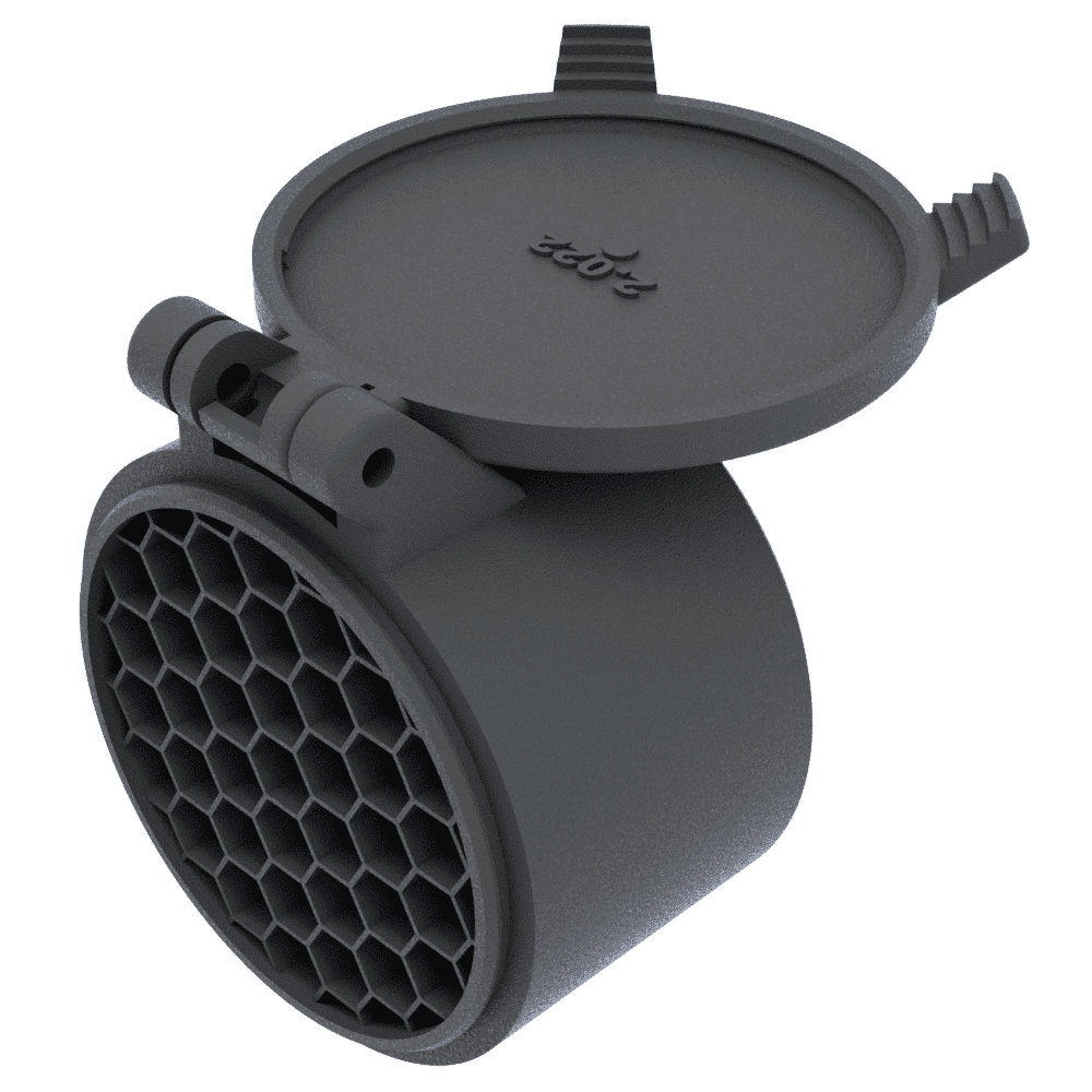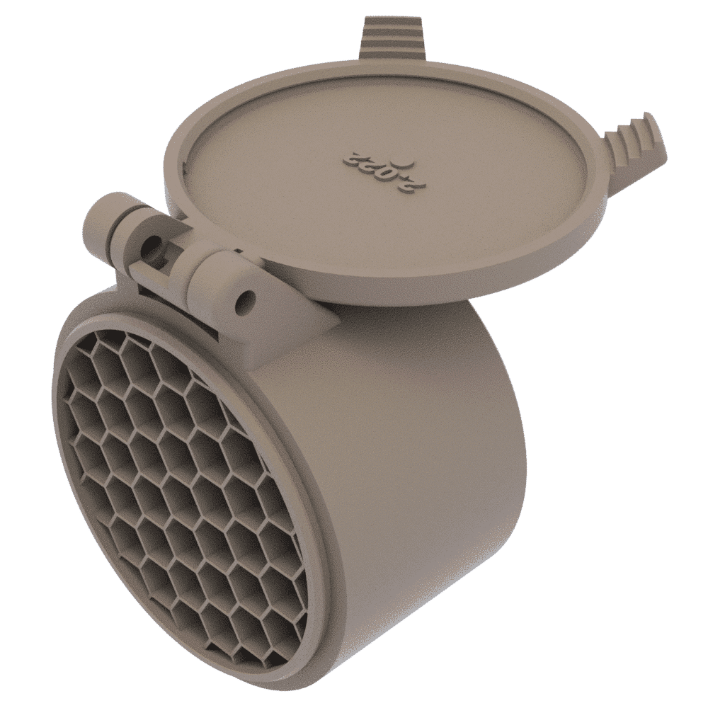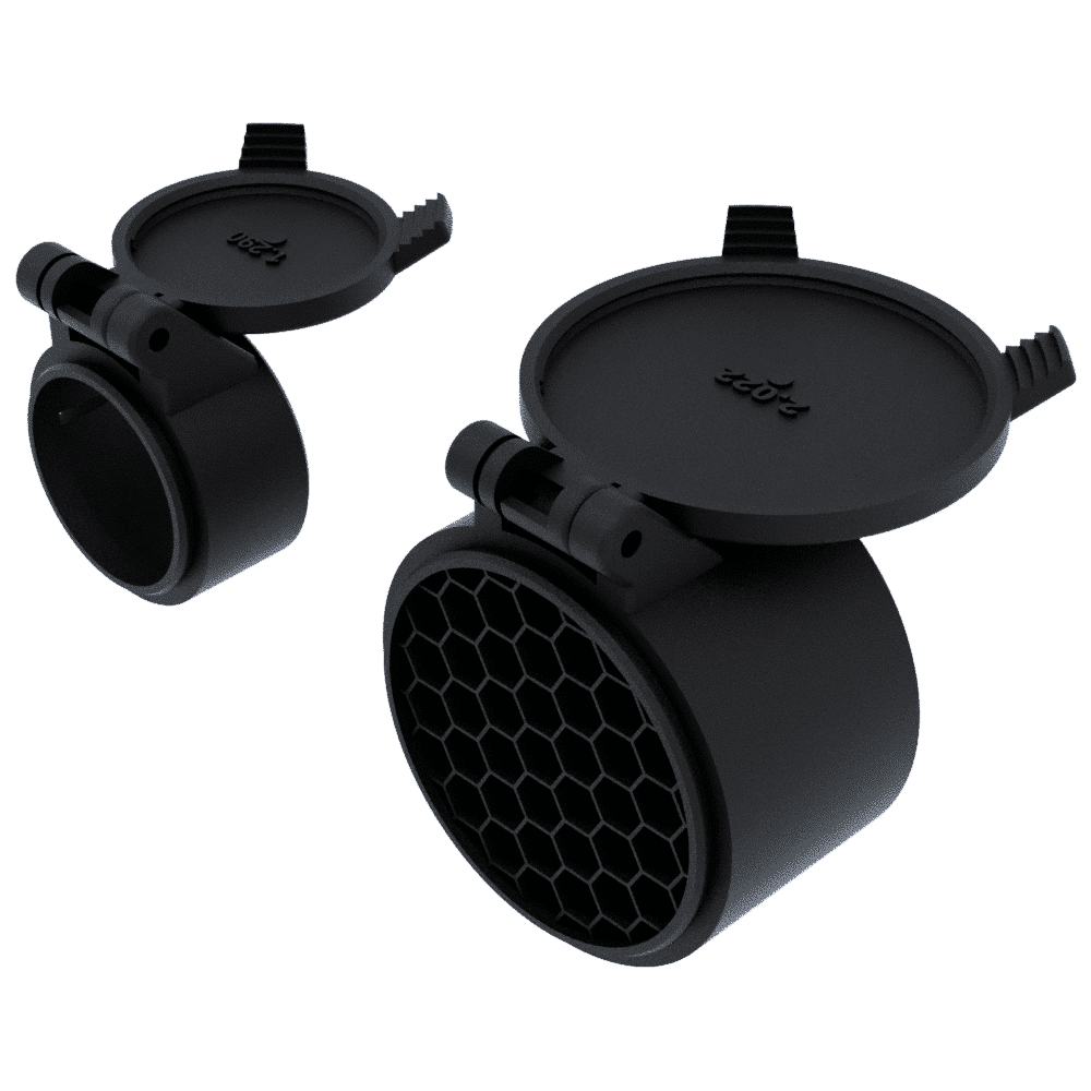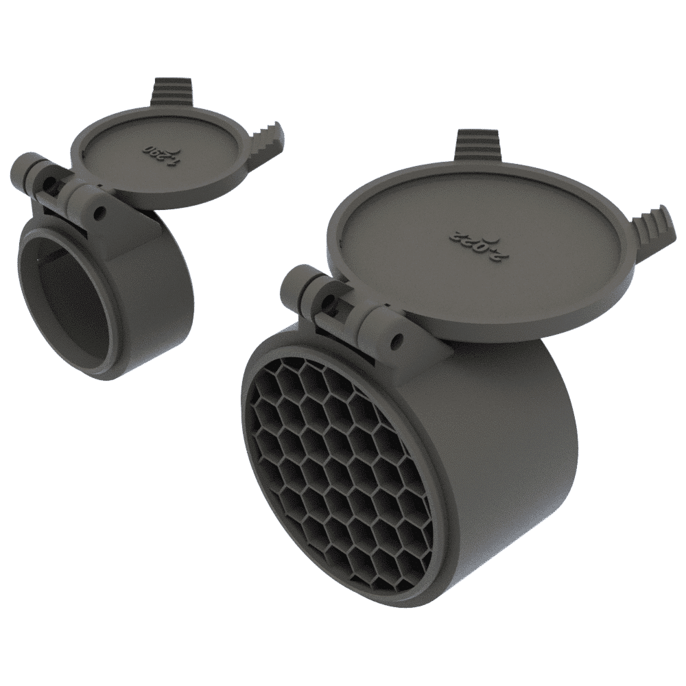 MK Machining is excited to offer Nightforce Integrated ARD Scope Caps. Our NX8 4-32X50 F1 Integrated ARD Scope Cap Set is made out of a Nylon 11 material using an HP MJF 5210 PRO 3D Printer. Nylon 11 is slightly flexible to fit over your scope objective without becoming brittle and is strong enough to handle wear and tear. Features an integrated ARD within the objective cap. The integrated ARD features a honeycomb pattern to help minimize glare of your objective lens. Our slightly larger honeycomb design allows more light in than typical ARD designs. Our scope cap sets are sized down to .000 for a precise fit. No one size fits most options here. Scope caps feature a custom made spring for full range opening and closing of the cap without unnecessary noise. Caps slip over the objective and are tightened down using a single bolt. Available in just objective or in a complete set.